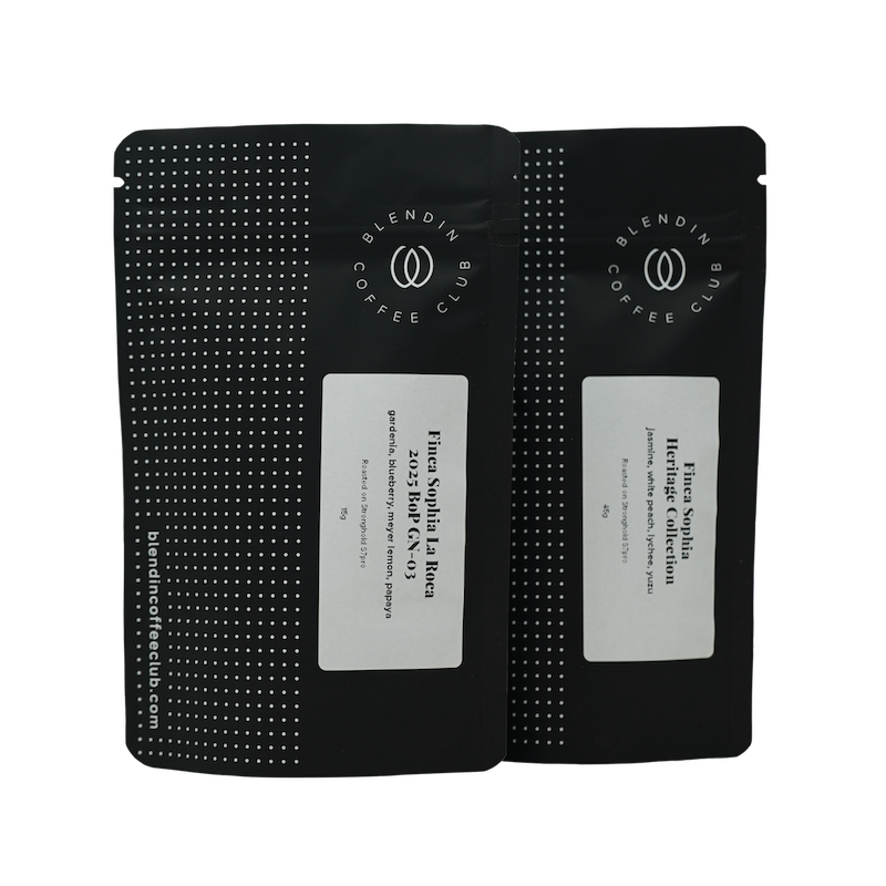 This set features 15g of BOP GN-03 Finca Sophia La Roca, accompanied by 45g of Finca Sophia Heritage Collection Washed Geisha.